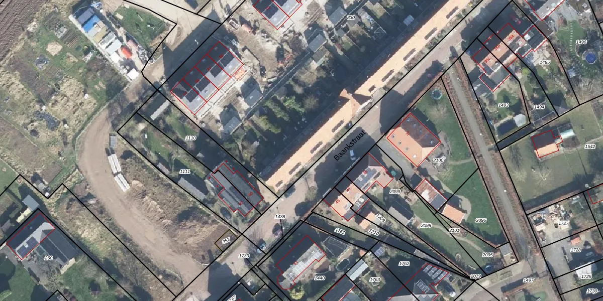 Het perceel waarop Baankstraat 76 staat heeft een oppervlakte van 6588 m². Dit is een zeer groot perceel. De perceeloppervlakte wordt geregistreerd door het Kadaster. Gedetailleerde informatie over de maten van dit perceel kunt u vinden in het rapport Kadastrale kaart met maatvoering van Baankstraat 76.
