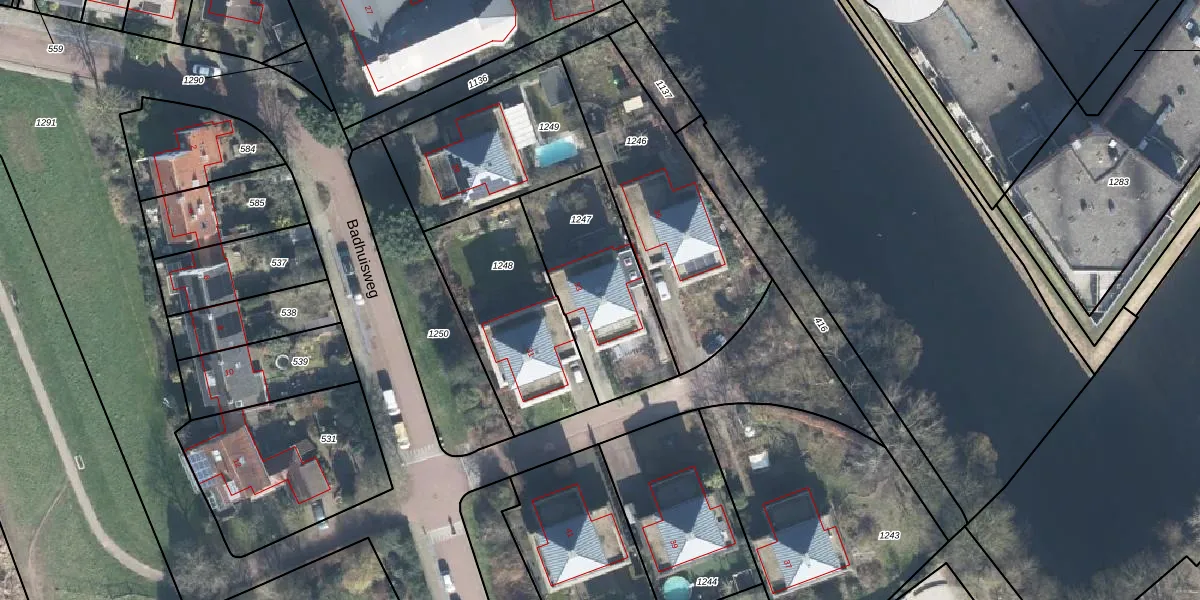 Badhuisweg 33 is gelegen op kadastraal perceel ZPN00D1247. Deze kadastrale aanduiding is uniek en wordt gebruikt door het Kadaster om eigendomsrechten en andere zakelijke rechten vast te leggen. Het perceel maakt onderdeel uit van de kadastrale gemeente Zutphen.