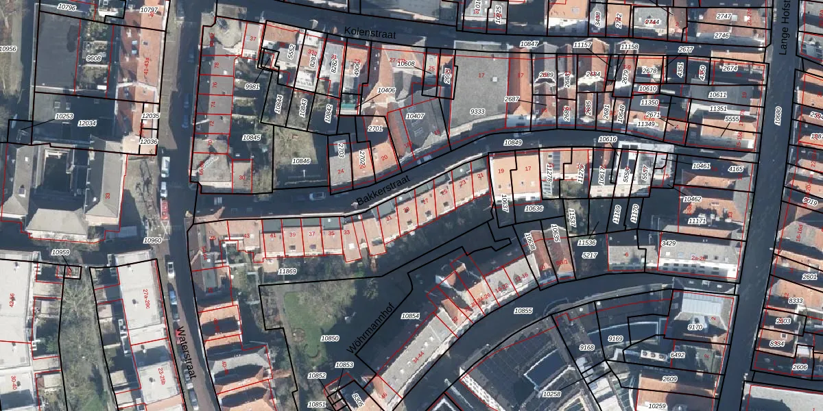 Het perceel waarop Bakkerstraat 29 staat heeft een oppervlakte van 1993 m². Dit is een zeer groot perceel. De perceeloppervlakte wordt geregistreerd door het Kadaster. Gedetailleerde informatie over de maten van dit perceel kunt u vinden in het rapport Kadastrale kaart met maatvoering van Bakkerstraat 29.