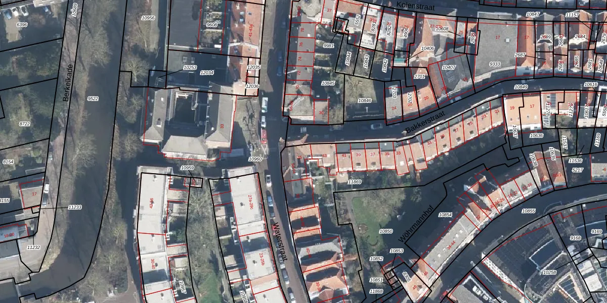 Het perceel waarop Bakkerstraat 45 staat heeft een oppervlakte van 1993 m². Dit is een zeer groot perceel. De perceeloppervlakte wordt geregistreerd door het Kadaster. Gedetailleerde informatie over de maten van dit perceel kunt u vinden in het rapport Kadastrale kaart met maatvoering van Bakkerstraat 45.