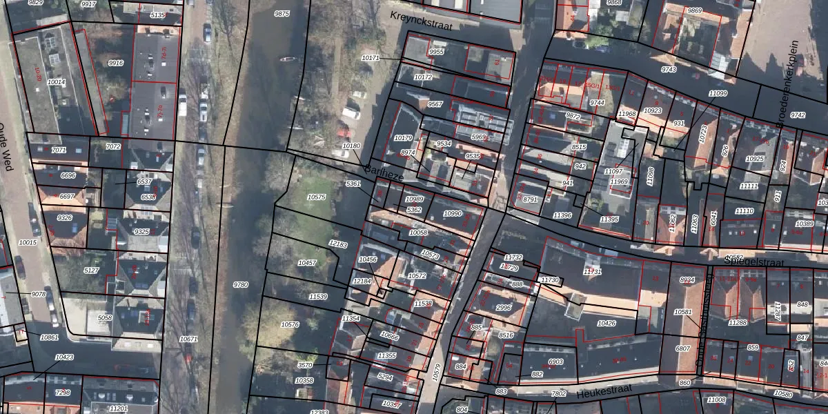 Gebruik de zoekbalk of klik op een perceel voor informatie over de adressen binnen dit perceel.