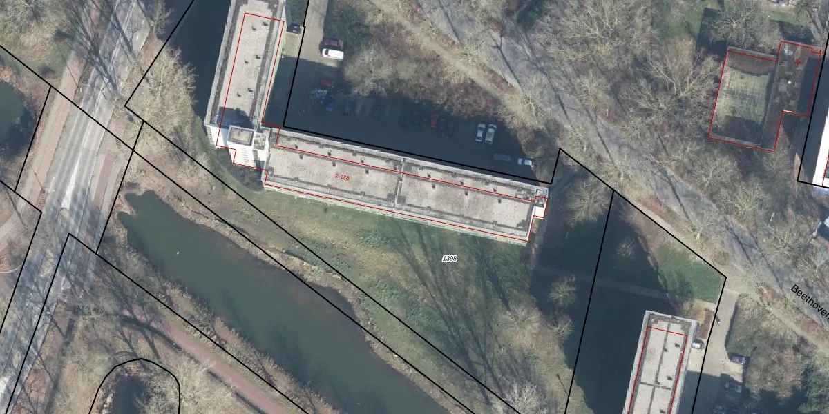 Het perceel waarop Beethovenstraat 106 staat heeft een oppervlakte van 5190 m². Dit is een zeer groot perceel. De perceeloppervlakte wordt geregistreerd door het Kadaster. Gedetailleerde informatie over de maten van dit perceel kunt u vinden in het rapport Kadastrale kaart met maatvoering van Beethovenstraat 106.