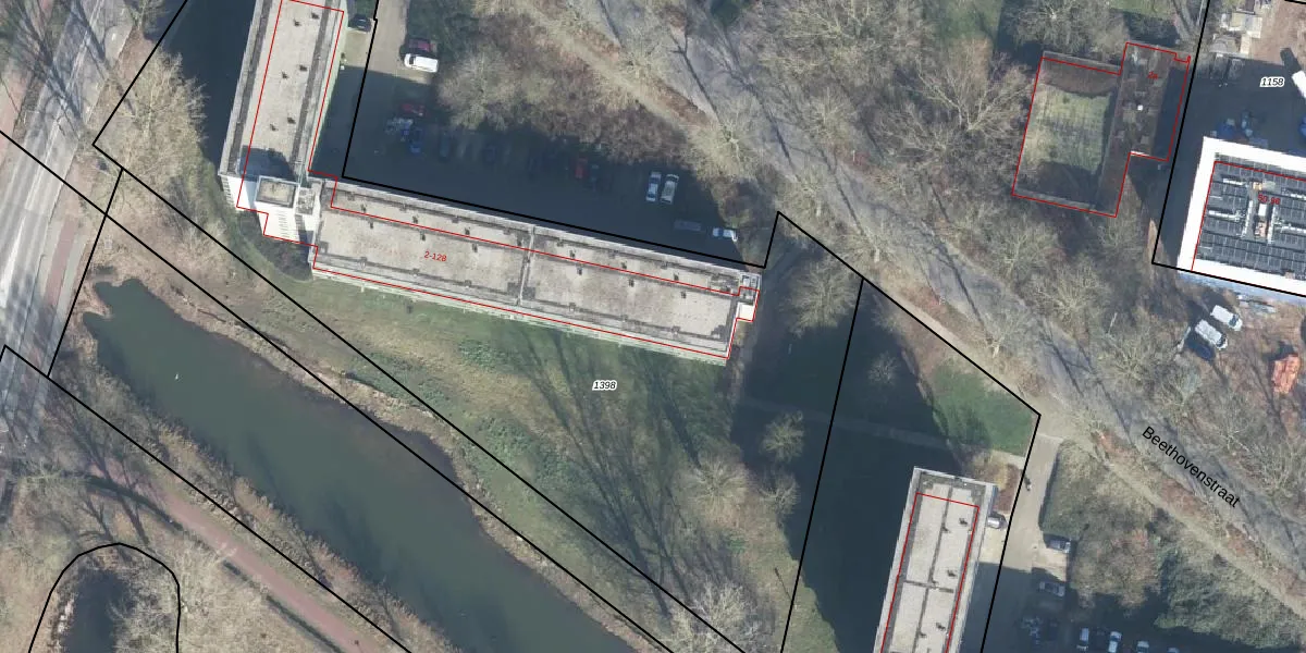 Het perceel waarop Beethovenstraat 110 staat heeft een oppervlakte van 5190 m². Dit is een zeer groot perceel. De perceeloppervlakte wordt geregistreerd door het Kadaster. Gedetailleerde informatie over de maten van dit perceel kunt u vinden in het rapport Kadastrale kaart met maatvoering van Beethovenstraat 110.