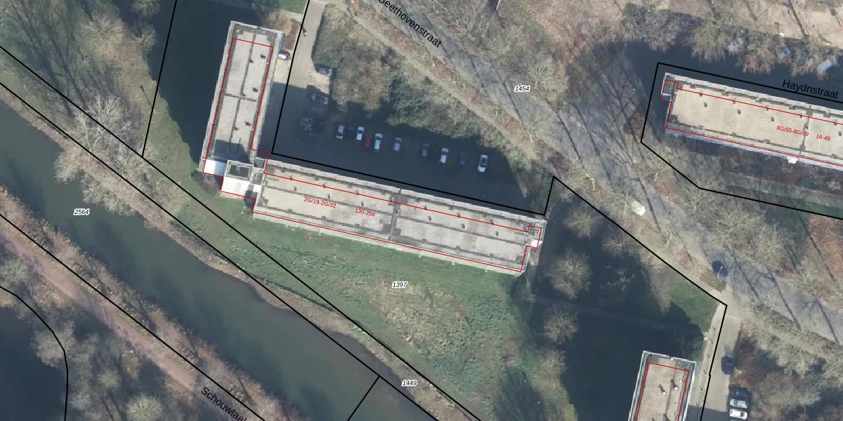 Het perceel waarop Beethovenstraat 130-G-11 staat heeft een oppervlakte van 8835 m². Dit is een zeer groot perceel. De perceeloppervlakte wordt geregistreerd door het Kadaster. Gedetailleerde informatie over de maten van dit perceel kunt u vinden in het rapport Kadastrale kaart met maatvoering van Beethovenstraat 130-G-11.