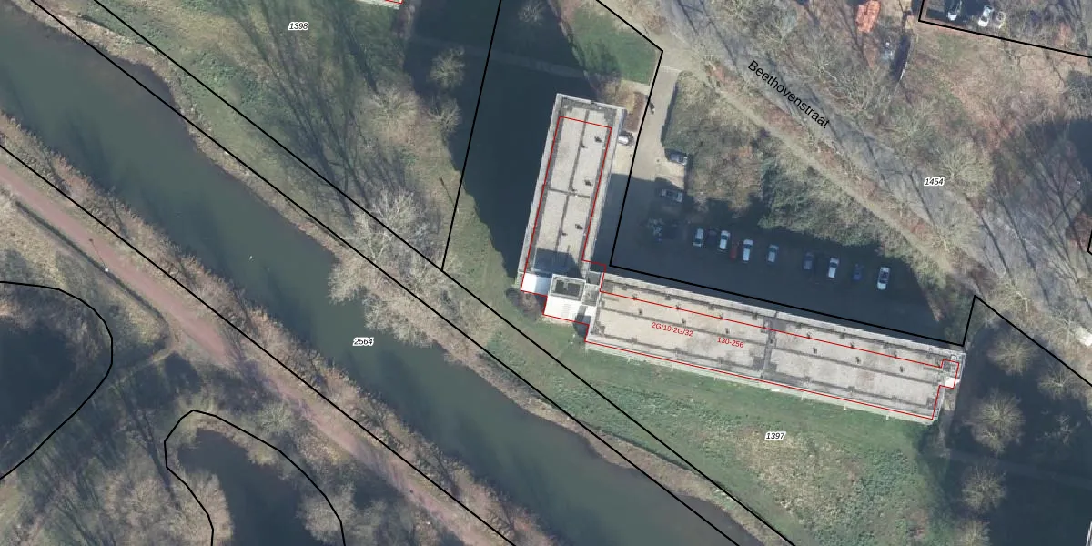 Het perceel waarop Beethovenstraat 162 staat heeft een oppervlakte van 8835 m². Dit is een zeer groot perceel. De perceeloppervlakte wordt geregistreerd door het Kadaster. Gedetailleerde informatie over de maten van dit perceel kunt u vinden in het rapport Kadastrale kaart met maatvoering van Beethovenstraat 162.