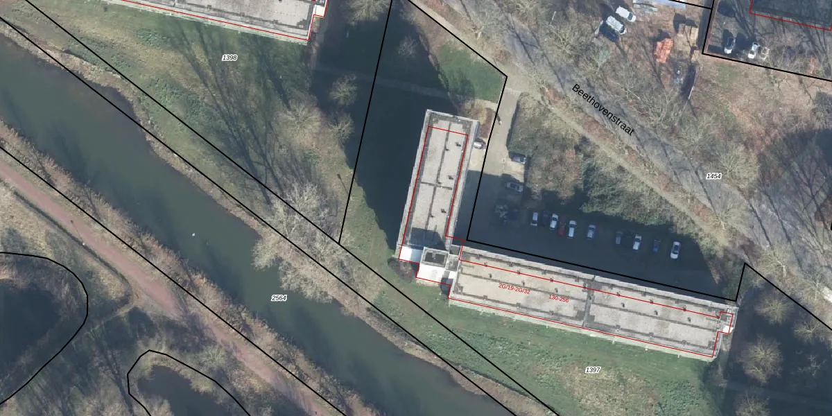Het perceel waarop Beethovenstraat 180 staat heeft een oppervlakte van 8835 m². Dit is een zeer groot perceel. De perceeloppervlakte wordt geregistreerd door het Kadaster. Gedetailleerde informatie over de maten van dit perceel kunt u vinden in het rapport Kadastrale kaart met maatvoering van Beethovenstraat 180.