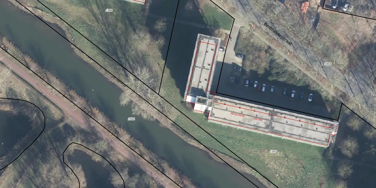Het perceel waarop Beethovenstraat 186 staat heeft een oppervlakte van 8835 m². Dit is een zeer groot perceel. De perceeloppervlakte wordt geregistreerd door het Kadaster. Gedetailleerde informatie over de maten van dit perceel kunt u vinden in het rapport Kadastrale kaart met maatvoering van Beethovenstraat 186.
