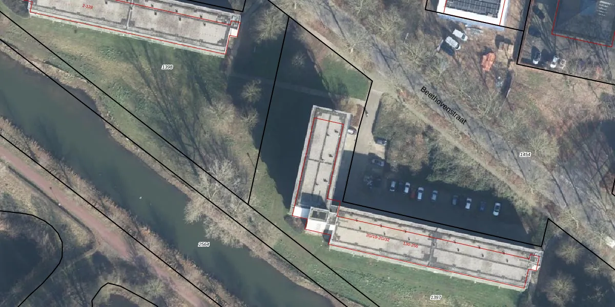Het perceel waarop Beethovenstraat 190 staat heeft een oppervlakte van 8835 m². Dit is een zeer groot perceel. De perceeloppervlakte wordt geregistreerd door het Kadaster. Gedetailleerde informatie over de maten van dit perceel kunt u vinden in het rapport Kadastrale kaart met maatvoering van Beethovenstraat 190.