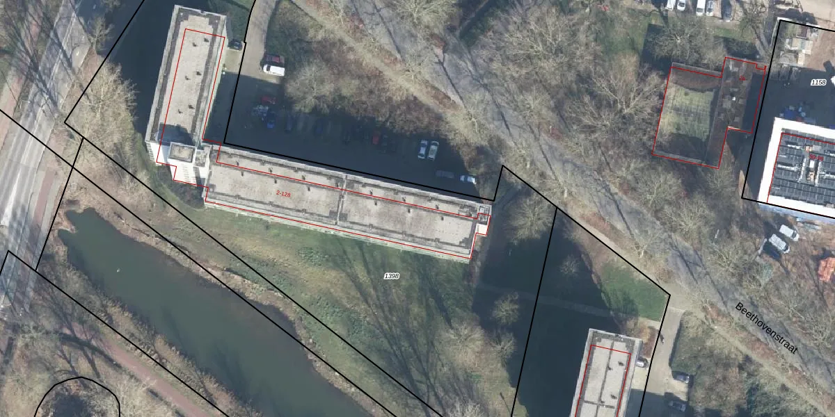 Het perceel waarop Beethovenstraat 2-G-13 staat heeft een oppervlakte van 5190 m². Dit is een zeer groot perceel. De perceeloppervlakte wordt geregistreerd door het Kadaster. Gedetailleerde informatie over de maten van dit perceel kunt u vinden in het rapport Kadastrale kaart met maatvoering van Beethovenstraat 2-G-13.