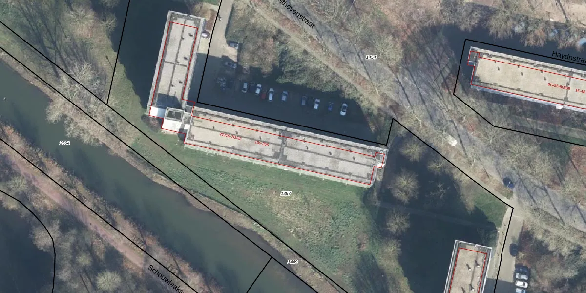 Het perceel waarop Beethovenstraat 202 staat heeft een oppervlakte van 8835 m². Dit is een zeer groot perceel. De perceeloppervlakte wordt geregistreerd door het Kadaster. Gedetailleerde informatie over de maten van dit perceel kunt u vinden in het rapport Kadastrale kaart met maatvoering van Beethovenstraat 202.