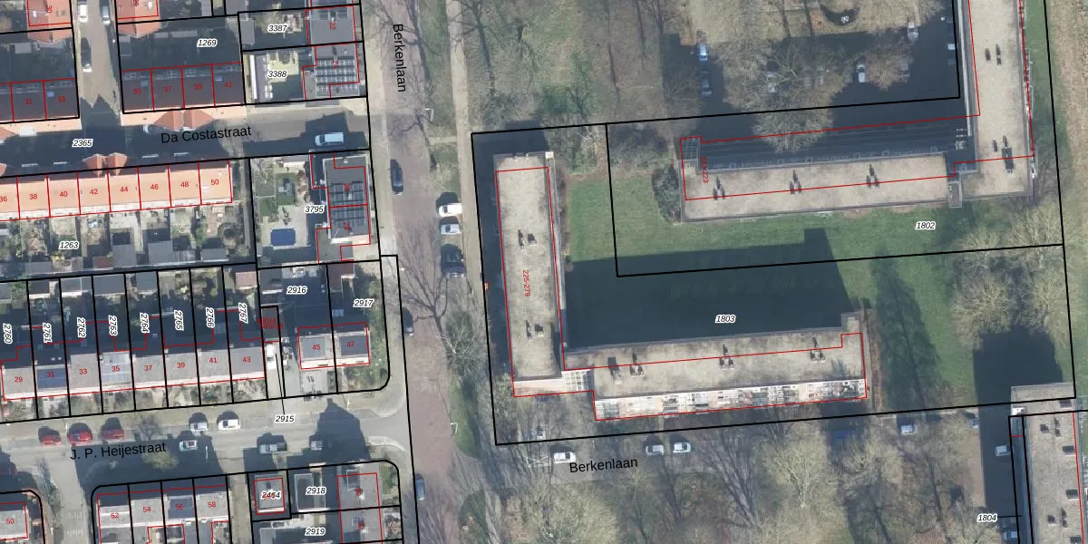 Het perceel waarop Berkenlaan 235 staat heeft een oppervlakte van 3729 m². Dit is een zeer groot perceel. De perceeloppervlakte wordt geregistreerd door het Kadaster. Gedetailleerde informatie over de maten van dit perceel kunt u vinden in het rapport Kadastrale kaart met maatvoering van Berkenlaan 235.