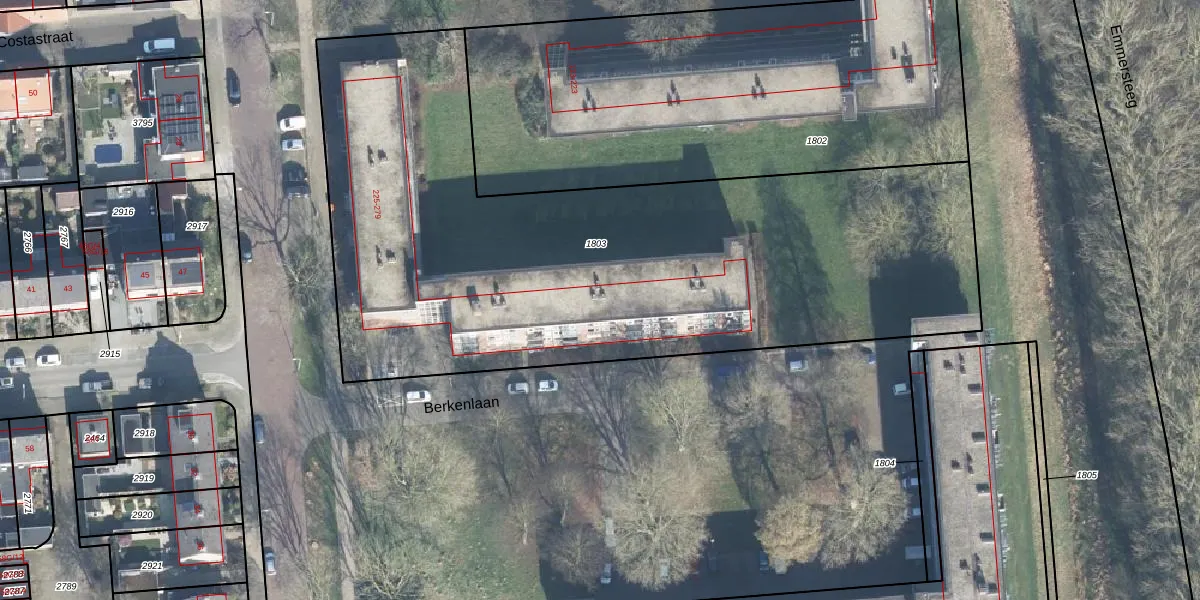 Het perceel waarop Berkenlaan 255 staat heeft een oppervlakte van 3729 m². Dit is een zeer groot perceel. De perceeloppervlakte wordt geregistreerd door het Kadaster. Gedetailleerde informatie over de maten van dit perceel kunt u vinden in het rapport Kadastrale kaart met maatvoering van Berkenlaan 255.