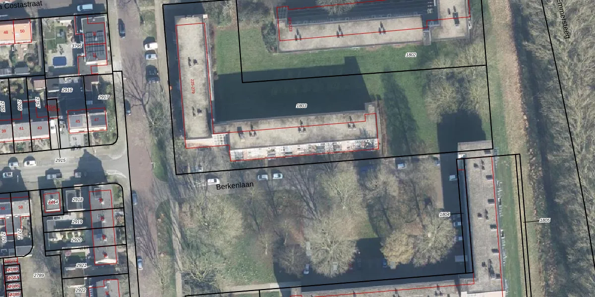 Het perceel waarop Berkenlaan 261 staat heeft een oppervlakte van 3729 m². Dit is een zeer groot perceel. De perceeloppervlakte wordt geregistreerd door het Kadaster. Gedetailleerde informatie over de maten van dit perceel kunt u vinden in het rapport Kadastrale kaart met maatvoering van Berkenlaan 261.