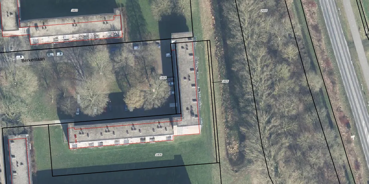 Het perceel waarop Berkenlaan 351 staat heeft een oppervlakte van 3207 m². Dit is een zeer groot perceel. De perceeloppervlakte wordt geregistreerd door het Kadaster. Gedetailleerde informatie over de maten van dit perceel kunt u vinden in het rapport Kadastrale kaart met maatvoering van Berkenlaan 351.
