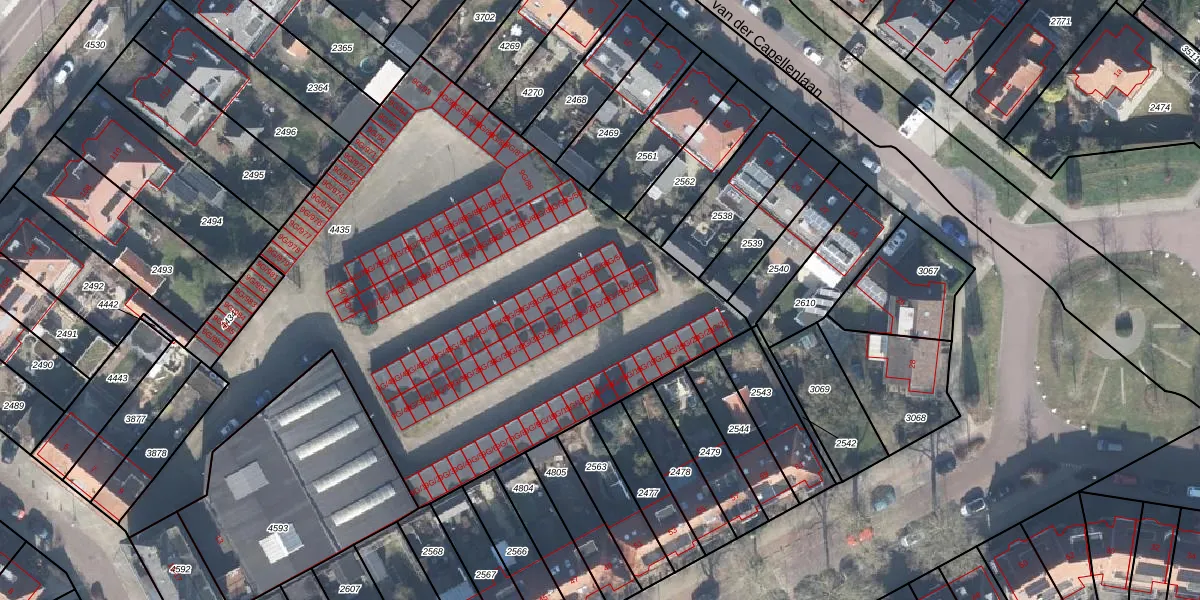 Het adres is gelegen op perceel 4435 in de sectie B en de kadastrale gemeente Zutphen. De kadastrale aanduiding is aldus ZPN00-B-4435. Het perceel is met 3471 m² relatief groot. Het gemiddelde ligt in de kadastrale gemeente Zutphen op 1485,03 m². Het kleinste perceel in de kadastrale gemeente is 0 m² groot. De grootste perceeloppervlakte is 37,1 ha. Op het perceel zijn 105 adressen aanwezig. De huidige grenzen van het perceel zijn digitaal in de Basisregistratie Kadaster (BRK) geregistreerd op 19-07-2005.