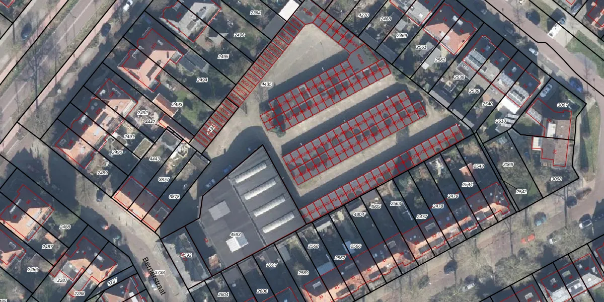 Het perceel waarop Bernerstraat 9-G-43 staat heeft een oppervlakte van 3471 m². Dit is een zeer groot perceel. De perceeloppervlakte wordt geregistreerd door het Kadaster. Gedetailleerde informatie over de maten van dit perceel kunt u vinden in het rapport Kadastrale kaart met maatvoering van Bernerstraat 9-G-43.
