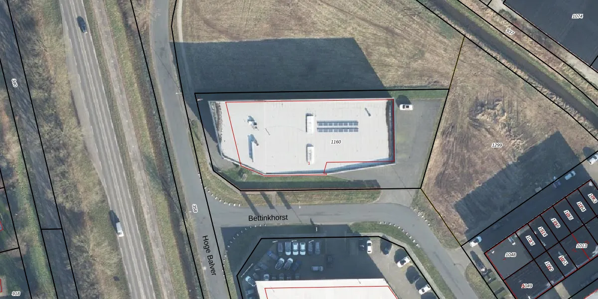 Het perceel waarop Bettinkhorst 1 staat heeft een oppervlakte van 2493 m². Dit is een zeer groot perceel. De perceeloppervlakte wordt geregistreerd door het Kadaster. Gedetailleerde informatie over de maten van dit perceel kunt u vinden in het rapport Kadastrale kaart met maatvoering van Bettinkhorst 1.
