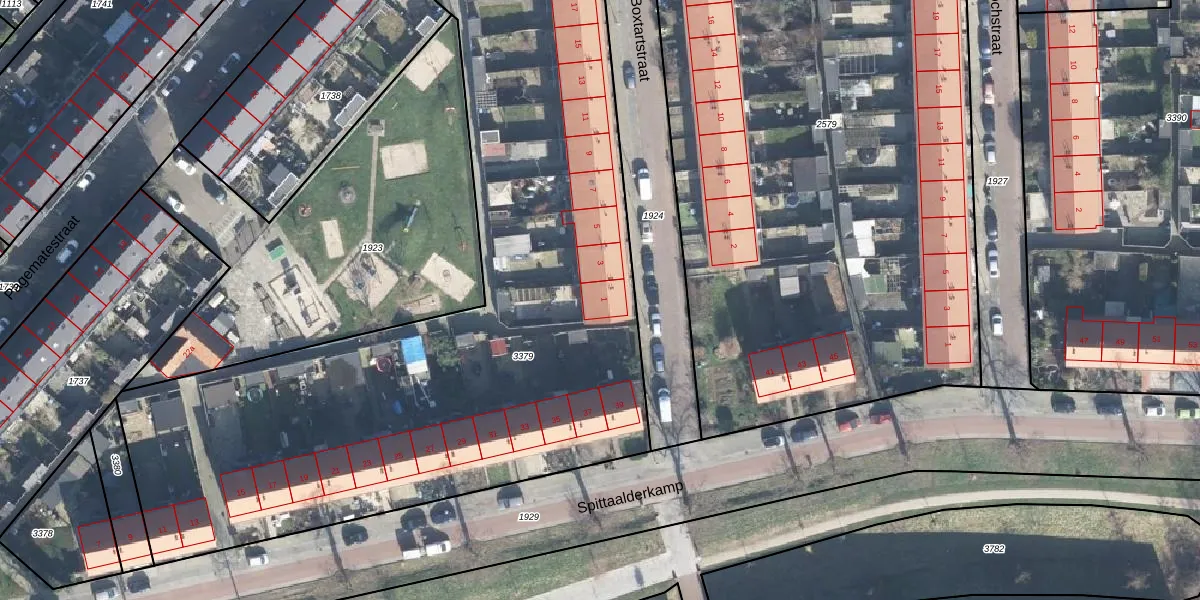 Het perceel waarop Boxtartstraat 1 staat heeft een oppervlakte van 4645 m². Dit is een zeer groot perceel. De perceeloppervlakte wordt geregistreerd door het Kadaster. Gedetailleerde informatie over de maten van dit perceel kunt u vinden in het rapport Kadastrale kaart met maatvoering van Boxtartstraat 1.
