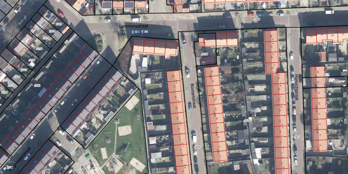 Het perceel waarop Boxtartstraat 17 staat heeft een oppervlakte van 4645 m². Dit is een zeer groot perceel. De perceeloppervlakte wordt geregistreerd door het Kadaster. Gedetailleerde informatie over de maten van dit perceel kunt u vinden in het rapport Kadastrale kaart met maatvoering van Boxtartstraat 17.