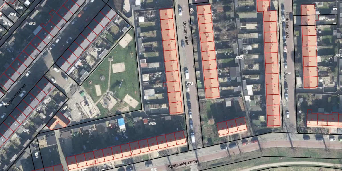 Het perceel waarop Boxtartstraat 5 staat heeft een oppervlakte van 4645 m². Dit is een zeer groot perceel. De perceeloppervlakte wordt geregistreerd door het Kadaster. Gedetailleerde informatie over de maten van dit perceel kunt u vinden in het rapport Kadastrale kaart met maatvoering van Boxtartstraat 5.