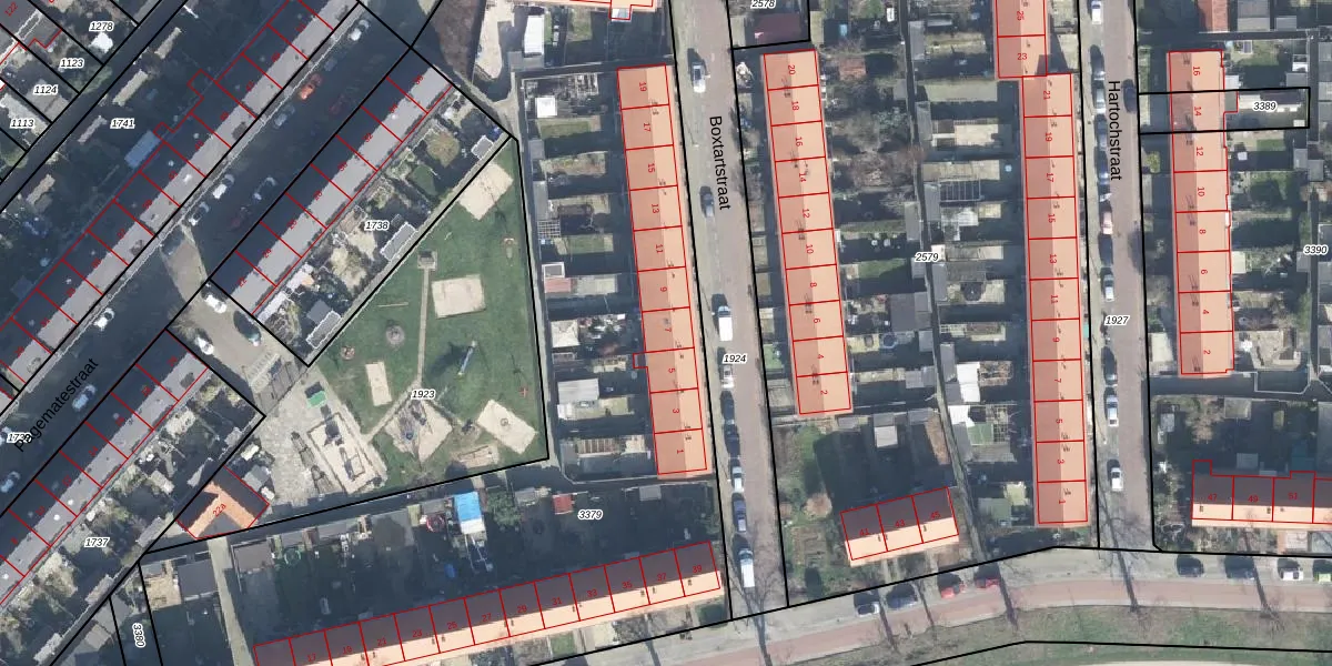 Het perceel waarop Boxtartstraat 7 staat heeft een oppervlakte van 4645 m². Dit is een zeer groot perceel. De perceeloppervlakte wordt geregistreerd door het Kadaster. Gedetailleerde informatie over de maten van dit perceel kunt u vinden in het rapport Kadastrale kaart met maatvoering van Boxtartstraat 7.