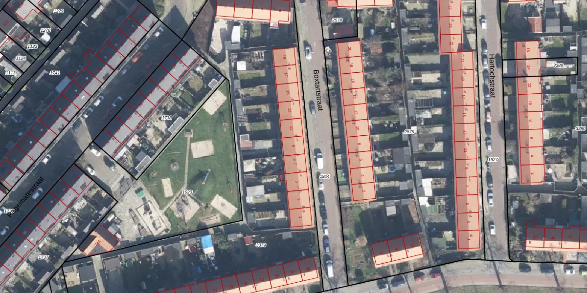 Het perceel waarop Boxtartstraat 9 staat heeft een oppervlakte van 4645 m². Dit is een zeer groot perceel. De perceeloppervlakte wordt geregistreerd door het Kadaster. Gedetailleerde informatie over de maten van dit perceel kunt u vinden in het rapport Kadastrale kaart met maatvoering van Boxtartstraat 9.