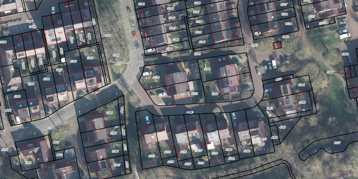 Het perceel waarop Braamkamp 412 staat heeft een oppervlakte van 349 m². Dit is een groot perceel. De perceeloppervlakte wordt geregistreerd door het Kadaster. Gedetailleerde informatie over de maten van dit perceel kunt u vinden in het rapport Kadastrale kaart met maatvoering van Braamkamp 412.