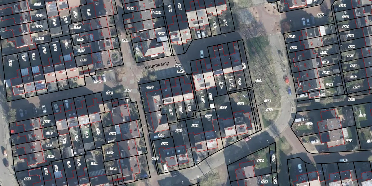 Het perceel waarop Braamkamp 430 staat heeft een oppervlakte van 129 m². Dit is een middelgroot perceel. De perceeloppervlakte wordt geregistreerd door het Kadaster. Gedetailleerde informatie over de maten van dit perceel kunt u vinden in het rapport Kadastrale kaart met maatvoering van Braamkamp 430.