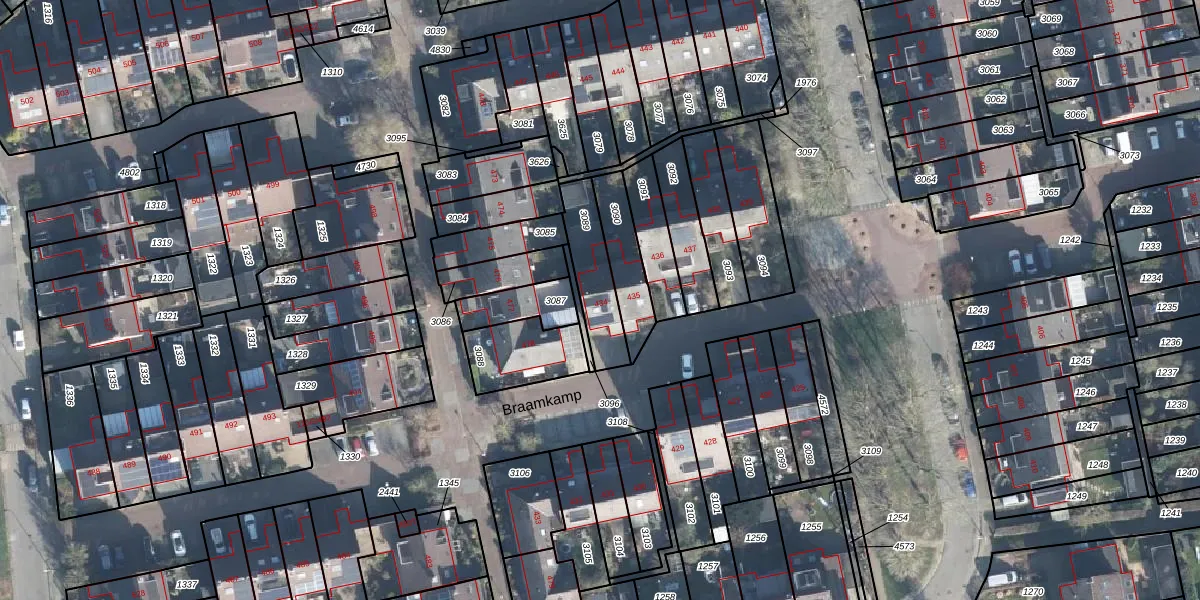 Het perceel waarop Braamkamp 434 staat heeft een oppervlakte van 188 m². Dit is een middelgroot perceel. De perceeloppervlakte wordt geregistreerd door het Kadaster. Gedetailleerde informatie over de maten van dit perceel kunt u vinden in het rapport Kadastrale kaart met maatvoering van Braamkamp 434.