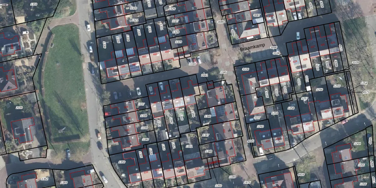Het perceel waarop Braamkamp 484 staat heeft een oppervlakte van 211 m². Dit is een middelgroot perceel. De perceeloppervlakte wordt geregistreerd door het Kadaster. Gedetailleerde informatie over de maten van dit perceel kunt u vinden in het rapport Kadastrale kaart met maatvoering van Braamkamp 484.