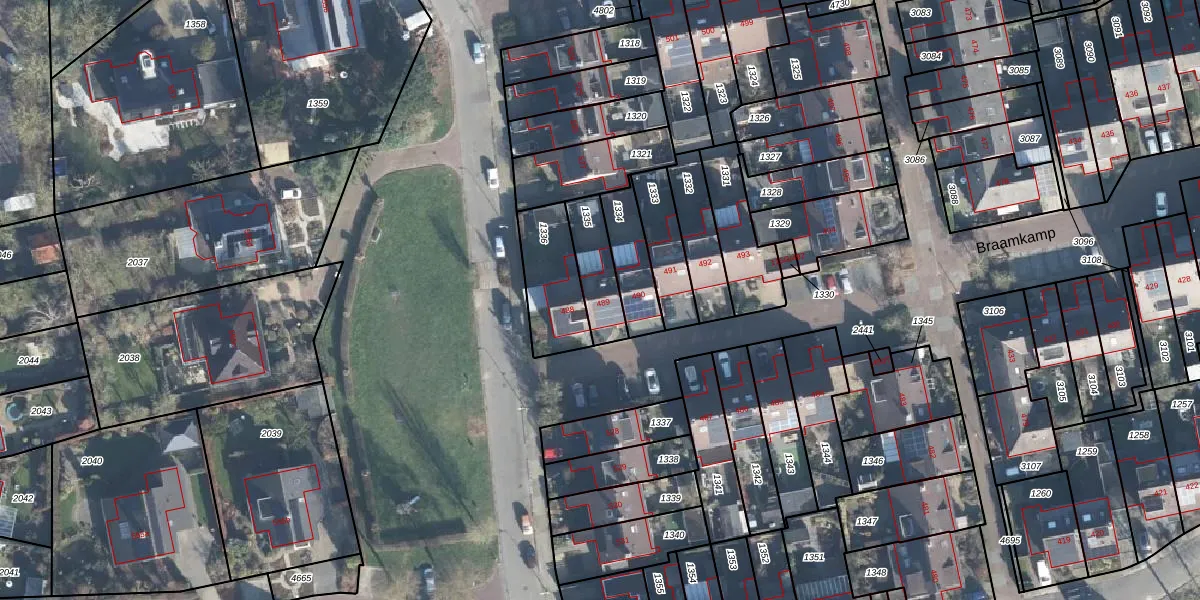 Het perceel waarop Braamkamp 489 staat heeft een oppervlakte van 146 m². Dit is een middelgroot perceel. De perceeloppervlakte wordt geregistreerd door het Kadaster. Gedetailleerde informatie over de maten van dit perceel kunt u vinden in het rapport Kadastrale kaart met maatvoering van Braamkamp 489.