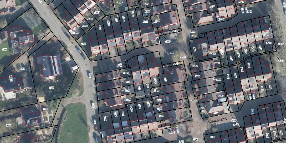 Het perceel waarop Braamkamp 500 staat heeft een oppervlakte van 169 m². Dit is een middelgroot perceel. De perceeloppervlakte wordt geregistreerd door het Kadaster. Gedetailleerde informatie over de maten van dit perceel kunt u vinden in het rapport Kadastrale kaart met maatvoering van Braamkamp 500.