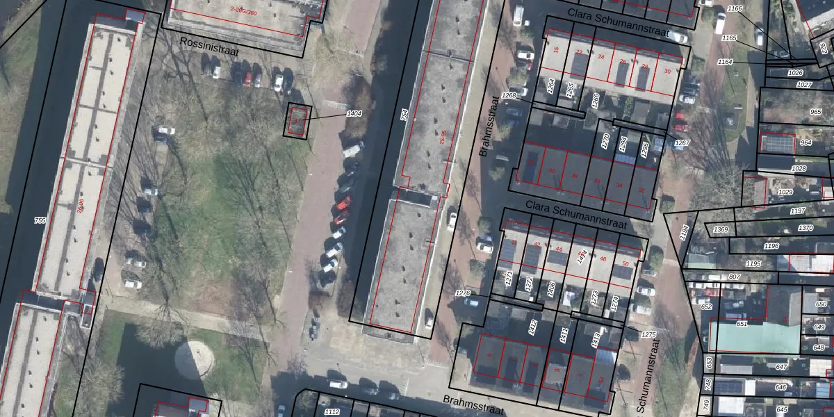 Het perceel waarop Brahmsstraat 33 staat heeft een oppervlakte van 2106 m². Dit is een zeer groot perceel. De perceeloppervlakte wordt geregistreerd door het Kadaster. Gedetailleerde informatie over de maten van dit perceel kunt u vinden in het rapport Kadastrale kaart met maatvoering van Brahmsstraat 33.