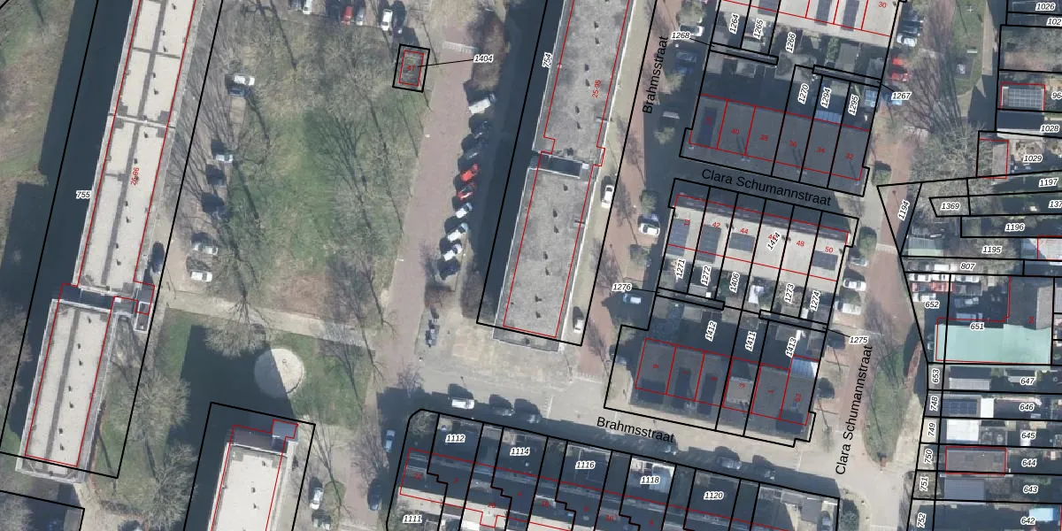 Het perceel waarop Brahmsstraat 45 staat heeft een oppervlakte van 2106 m². Dit is een zeer groot perceel. De perceeloppervlakte wordt geregistreerd door het Kadaster. Gedetailleerde informatie over de maten van dit perceel kunt u vinden in het rapport Kadastrale kaart met maatvoering van Brahmsstraat 45.