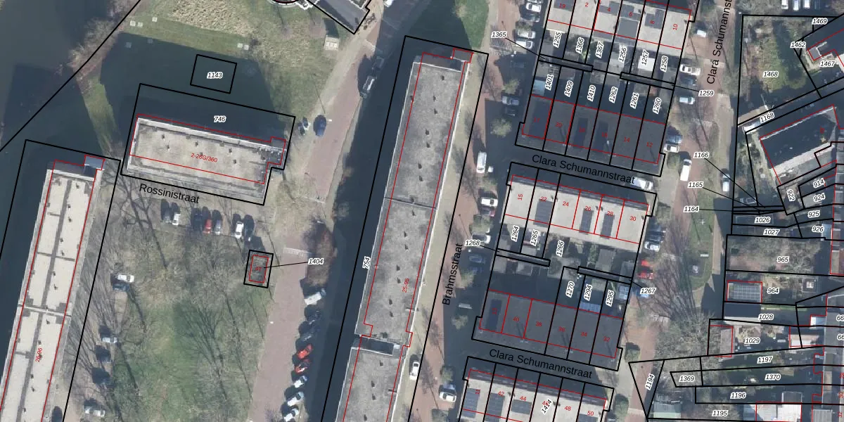 Het perceel waarop Brahmsstraat 55 staat heeft een oppervlakte van 2106 m². Dit is een zeer groot perceel. De perceeloppervlakte wordt geregistreerd door het Kadaster. Gedetailleerde informatie over de maten van dit perceel kunt u vinden in het rapport Kadastrale kaart met maatvoering van Brahmsstraat 55.