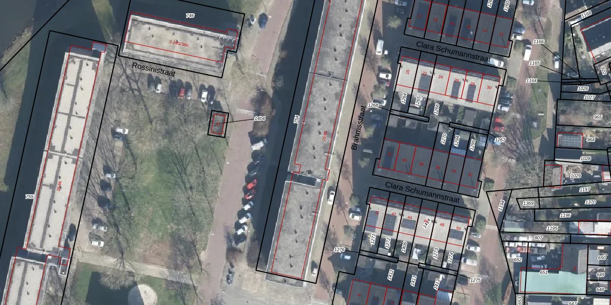Het perceel waarop Brahmsstraat 81 staat heeft een oppervlakte van 2106 m². Dit is een zeer groot perceel. De perceeloppervlakte wordt geregistreerd door het Kadaster. Gedetailleerde informatie over de maten van dit perceel kunt u vinden in het rapport Kadastrale kaart met maatvoering van Brahmsstraat 81.