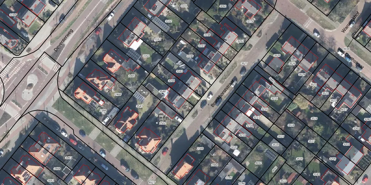 Bronkhorststraat 3 is gelegen op kadastraal perceel ZPN00B3164. Deze kadastrale aanduiding is uniek en wordt gebruikt door het Kadaster om eigendomsrechten en andere zakelijke rechten vast te leggen. Het perceel maakt onderdeel uit van de kadastrale gemeente Zutphen.
