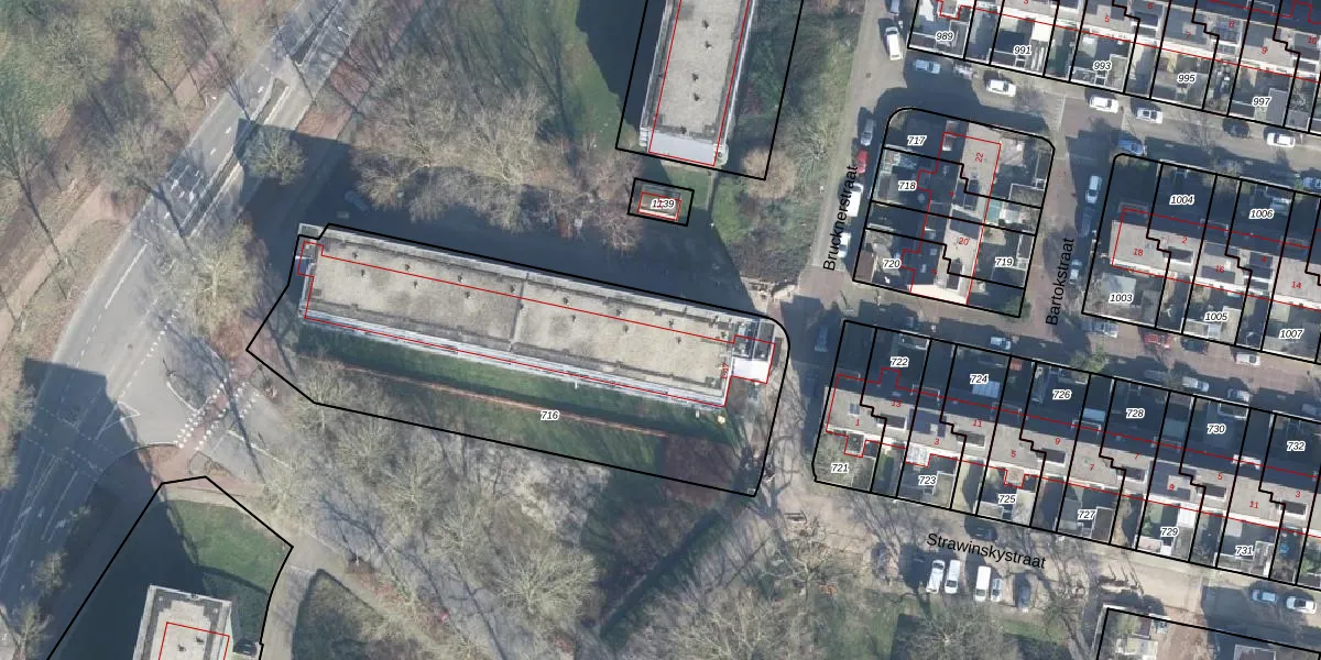 Het perceel waarop Brucknerstraat 1-G-76 staat heeft een oppervlakte van 2060 m². Dit is een zeer groot perceel. De perceeloppervlakte wordt geregistreerd door het Kadaster. Gedetailleerde informatie over de maten van dit perceel kunt u vinden in het rapport Kadastrale kaart met maatvoering van Brucknerstraat 1-G-76.
