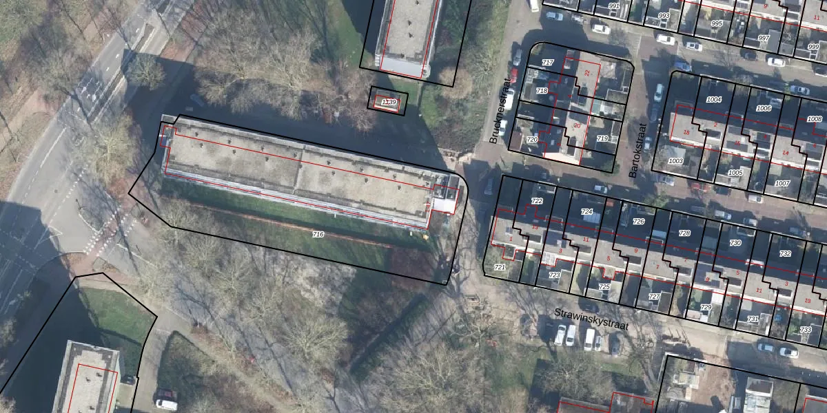 Het perceel waarop Brucknerstraat 17 staat heeft een oppervlakte van 2060 m². Dit is een zeer groot perceel. De perceeloppervlakte wordt geregistreerd door het Kadaster. Gedetailleerde informatie over de maten van dit perceel kunt u vinden in het rapport Kadastrale kaart met maatvoering van Brucknerstraat 17.
