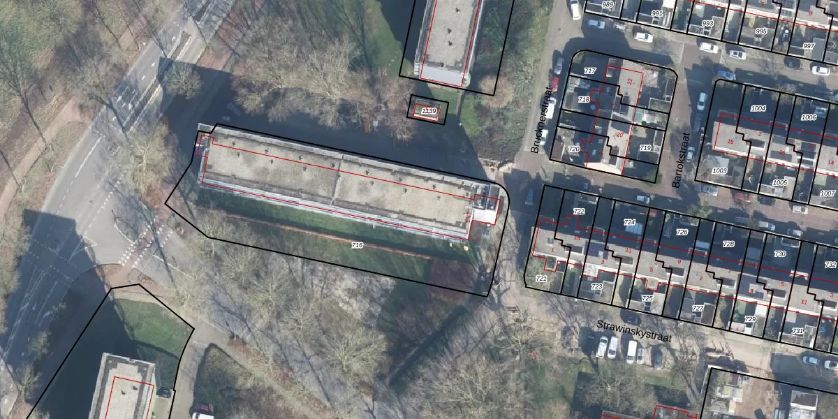 Het perceel waarop Brucknerstraat 19 staat heeft een oppervlakte van 2060 m². Dit is een zeer groot perceel. De perceeloppervlakte wordt geregistreerd door het Kadaster. Gedetailleerde informatie over de maten van dit perceel kunt u vinden in het rapport Kadastrale kaart met maatvoering van Brucknerstraat 19.