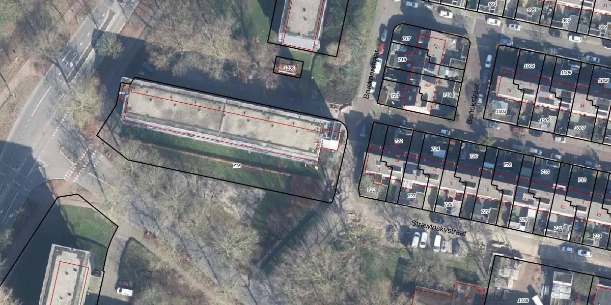 Het perceel waarop Brucknerstraat 33 staat heeft een oppervlakte van 2060 m². Dit is een zeer groot perceel. De perceeloppervlakte wordt geregistreerd door het Kadaster. Gedetailleerde informatie over de maten van dit perceel kunt u vinden in het rapport Kadastrale kaart met maatvoering van Brucknerstraat 33.