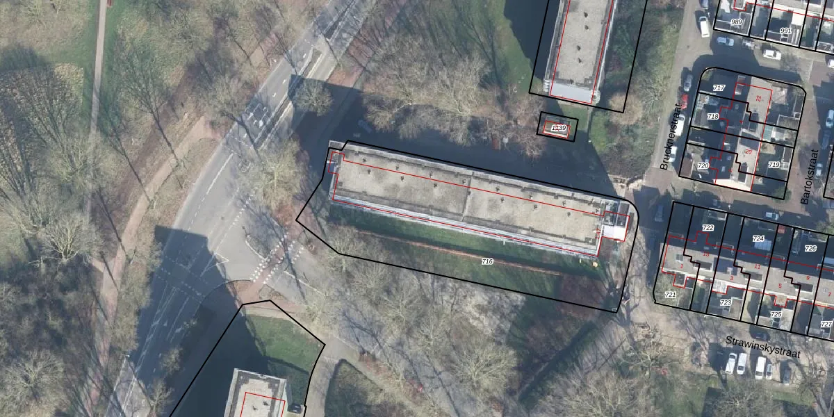 Het perceel waarop Brucknerstraat 43 staat heeft een oppervlakte van 2060 m². Dit is een zeer groot perceel. De perceeloppervlakte wordt geregistreerd door het Kadaster. Gedetailleerde informatie over de maten van dit perceel kunt u vinden in het rapport Kadastrale kaart met maatvoering van Brucknerstraat 43.