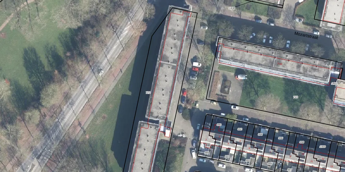 Het perceel waarop Brucknerstraat 49-G-313 staat heeft een oppervlakte van 2343 m². Dit is een zeer groot perceel. De perceeloppervlakte wordt geregistreerd door het Kadaster. Gedetailleerde informatie over de maten van dit perceel kunt u vinden in het rapport Kadastrale kaart met maatvoering van Brucknerstraat 49-G-313.
