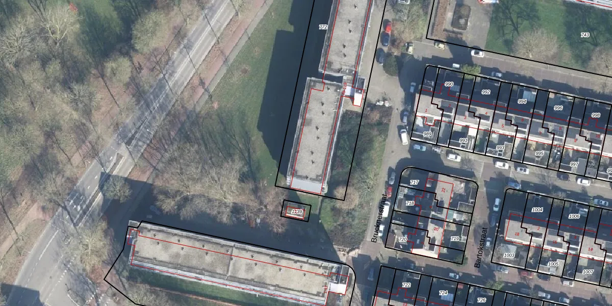 Het perceel waarop Brucknerstraat 69 staat heeft een oppervlakte van 2343 m². Dit is een zeer groot perceel. De perceeloppervlakte wordt geregistreerd door het Kadaster. Gedetailleerde informatie over de maten van dit perceel kunt u vinden in het rapport Kadastrale kaart met maatvoering van Brucknerstraat 69.