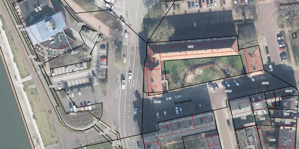 Brugstraat 16 is gelegen op kadastraal perceel ZPN00F9765. Deze kadastrale aanduiding is uniek en wordt gebruikt door het Kadaster om eigendomsrechten en andere zakelijke rechten vast te leggen. Het perceel maakt onderdeel uit van de kadastrale gemeente Zutphen.
