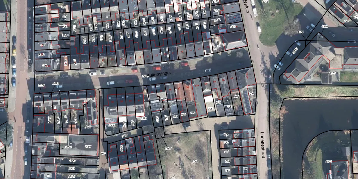 Het perceel waarop Buitensingel 50 staat heeft een oppervlakte van 115 m². Dit is een middelgroot perceel. De perceeloppervlakte wordt geregistreerd door het Kadaster. Gedetailleerde informatie over de maten van dit perceel kunt u vinden in het rapport Kadastrale kaart met maatvoering van Buitensingel 50.