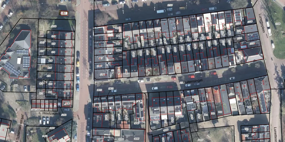 Het perceel waarop Buitensingel 9 staat heeft een oppervlakte van 94 m². Dit is een klein perceel. De perceeloppervlakte wordt geregistreerd door het Kadaster. Gedetailleerde informatie over de maten van dit perceel kunt u vinden in het rapport Kadastrale kaart met maatvoering van Buitensingel 9.