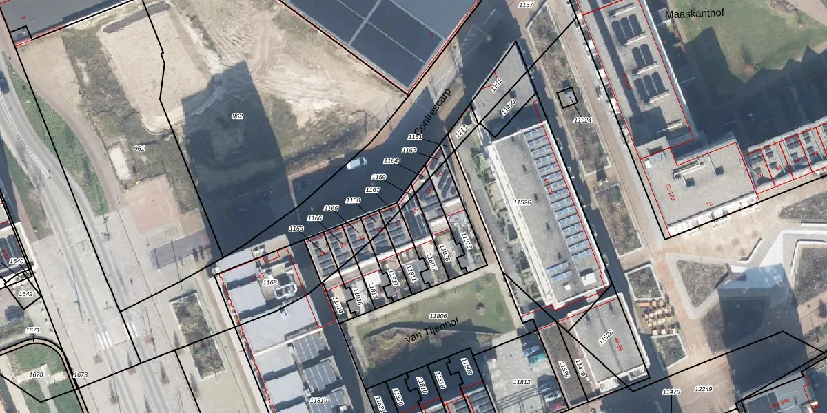 Het perceel waarop Contrescarp 15 staat heeft een oppervlakte van 103 m². Dit is een middelgroot perceel. De perceeloppervlakte wordt geregistreerd door het Kadaster. Gedetailleerde informatie over de maten van dit perceel kunt u vinden in het rapport Kadastrale kaart met maatvoering van Contrescarp 15.