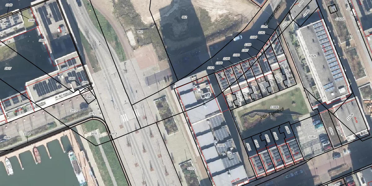 Het perceel waarop Contrescarp 27 staat heeft een oppervlakte van 306 m². Dit is een groot perceel. De perceeloppervlakte wordt geregistreerd door het Kadaster. Gedetailleerde informatie over de maten van dit perceel kunt u vinden in het rapport Kadastrale kaart met maatvoering van Contrescarp 27.