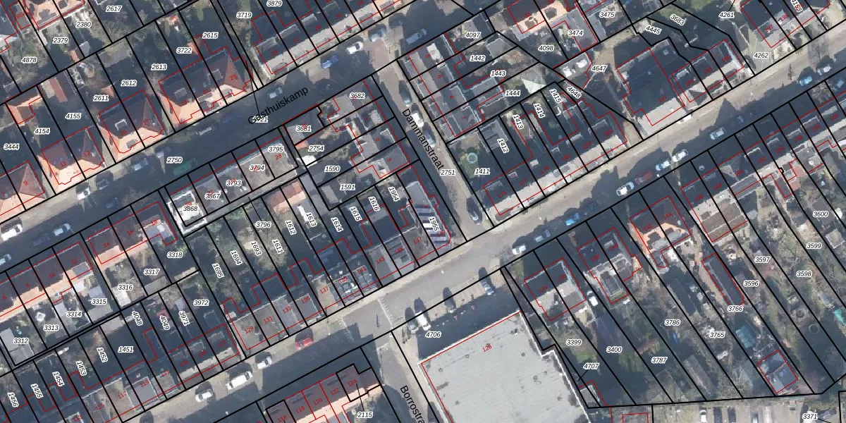 Het perceel waarop Dammanstraat 1 staat heeft een oppervlakte van 162 m². Dit is een middelgroot perceel. De perceeloppervlakte wordt geregistreerd door het Kadaster. Gedetailleerde informatie over de maten van dit perceel kunt u vinden in het rapport Kadastrale kaart met maatvoering van Dammanstraat 1.